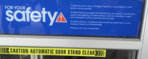 First campus carry experience just now. I just walked my 15 year old to an office in the UT Moody Communication Building. Big ugly 30.06, I guess justified by some kind of medical research, on the office door.