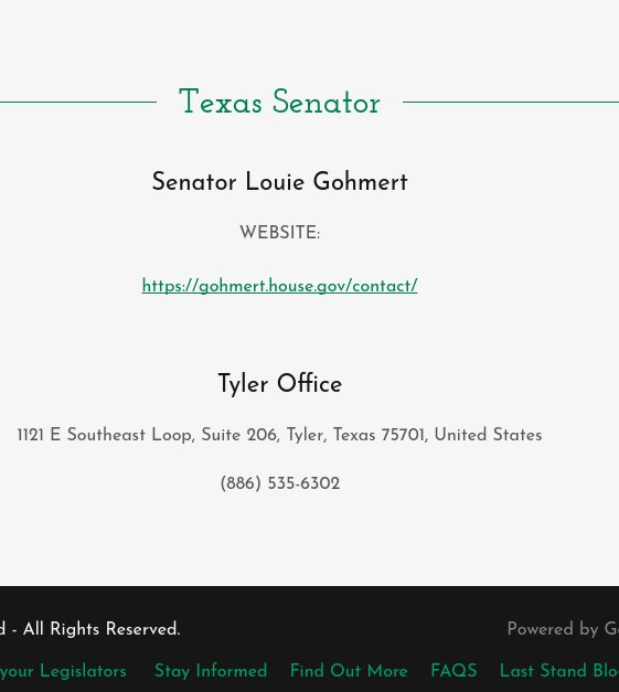 Seeing what you wrote, I went to the website to see for myself. I saw Gohmert mentioned as a Representative. What did I miss?