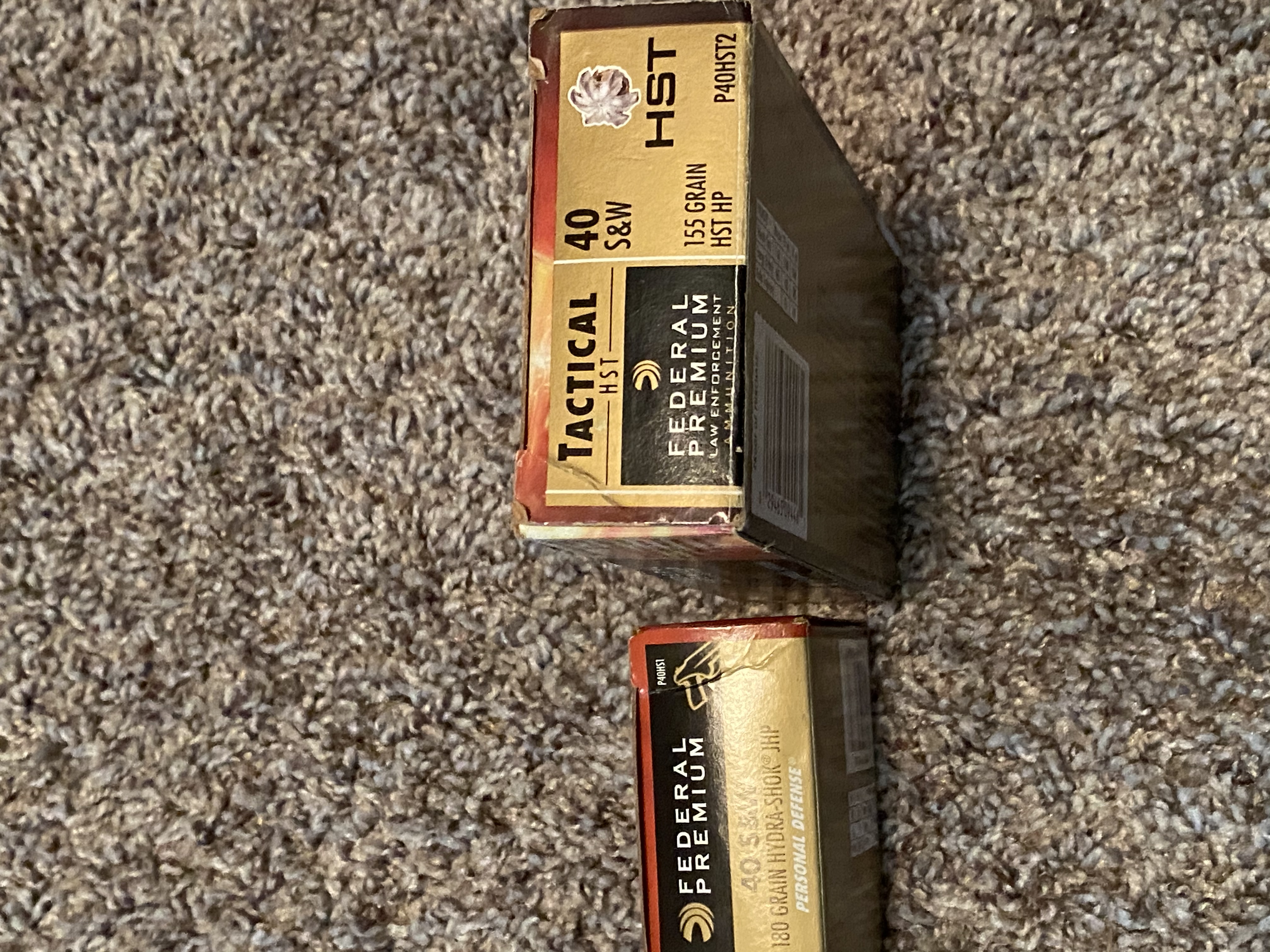 .40 s&w : 17rds of federal hydrashok (180gr), 34 rds of HST LE ammo (155gr) - $60.