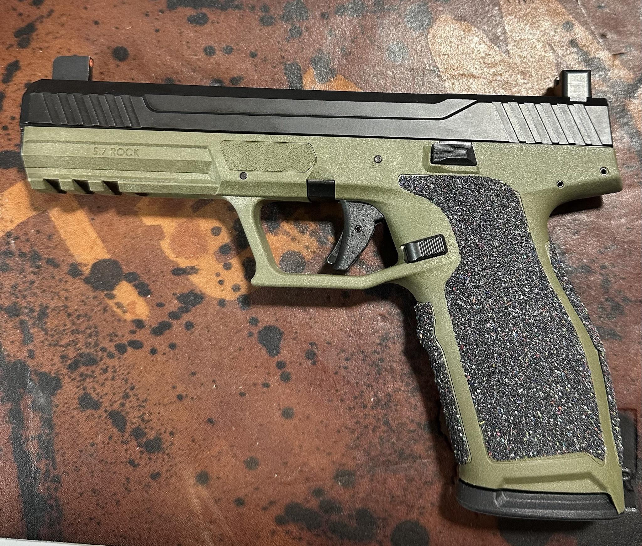 5.7 Rock, 23 Rd magazine, sniper Green frame, suppressor height night sights TG-H3 Truglo.