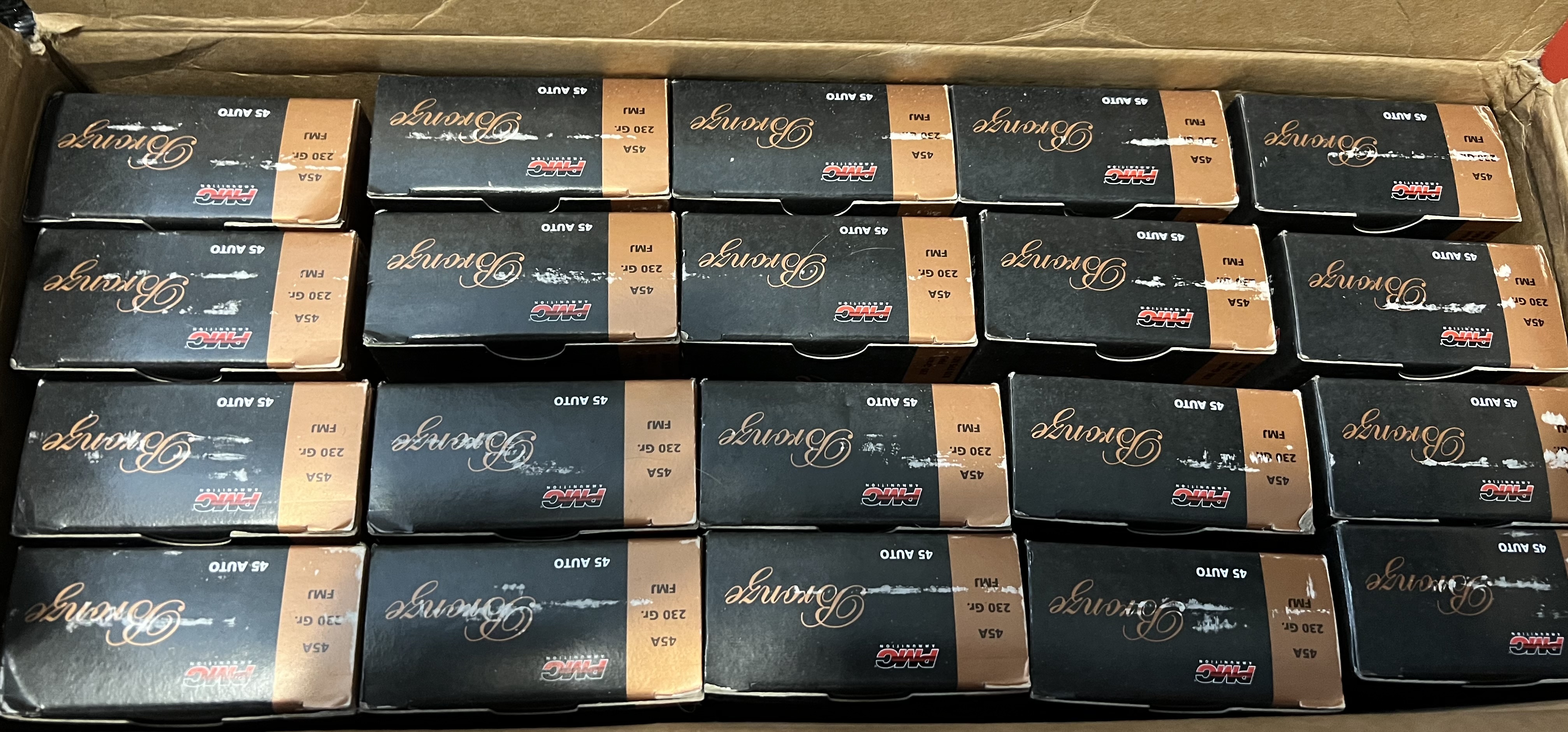 I have a case of PMC .45acp. It is about four months old. I have just cleaned my room and realize I have way too much .45acp. This is 1,000 rounds of target ammo. I paid $423.00 with tax and shipping. You can have it at $350.00 FTF