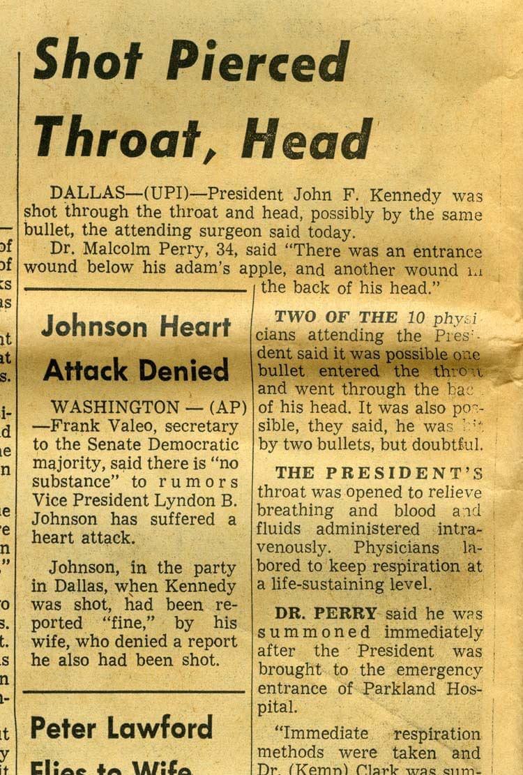 The news article below was published the same day as his assassination. It was an interview with an emergency room doctor who describes what they did to JFK. I found it in the newspapers I saved from that day.