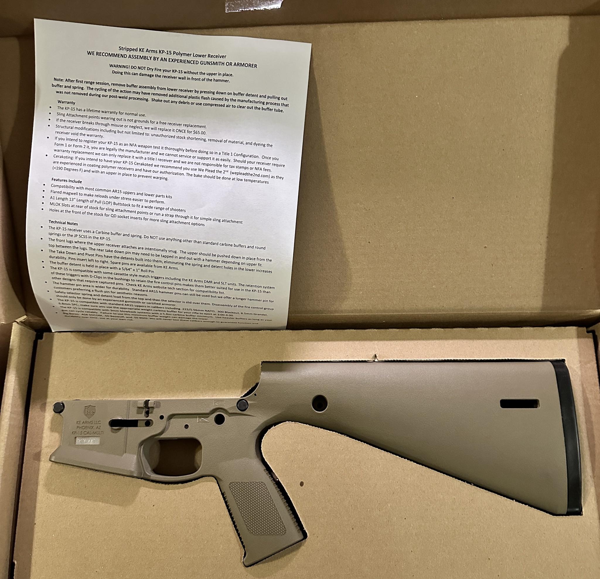 Re: WTS KP-15 Stripped Lower Receiver Polymer FDE Houston