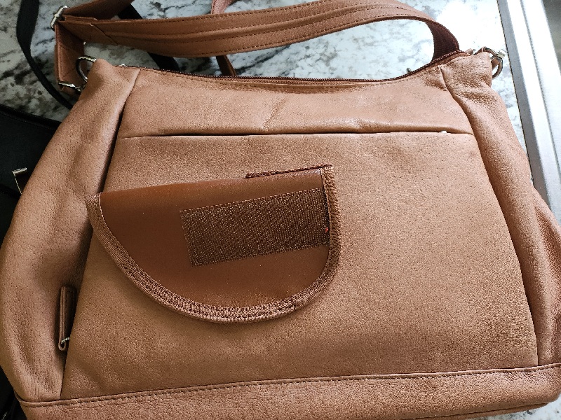 I have two leather concealed carry purses from Gun Tote'n Mamas. One black and one tan. They are pretty big with a lot of pockets/pouches (approximately 14.5" long; 10" tall; 5.25 wide at base). Includes a small holster (J-frame or small semi-auto) for each purse. These purses were only used a handful of times then retired to my wife's 'handbag graveyard'. They are really well made and were north of $100.00 each when new. The black purses looks great, the tan one has a couple small spots from something (see the photo). Asking $50.00 for both and will send by insured USPS for extra $10.00. Can meet within reasonable proximity to Terrell.