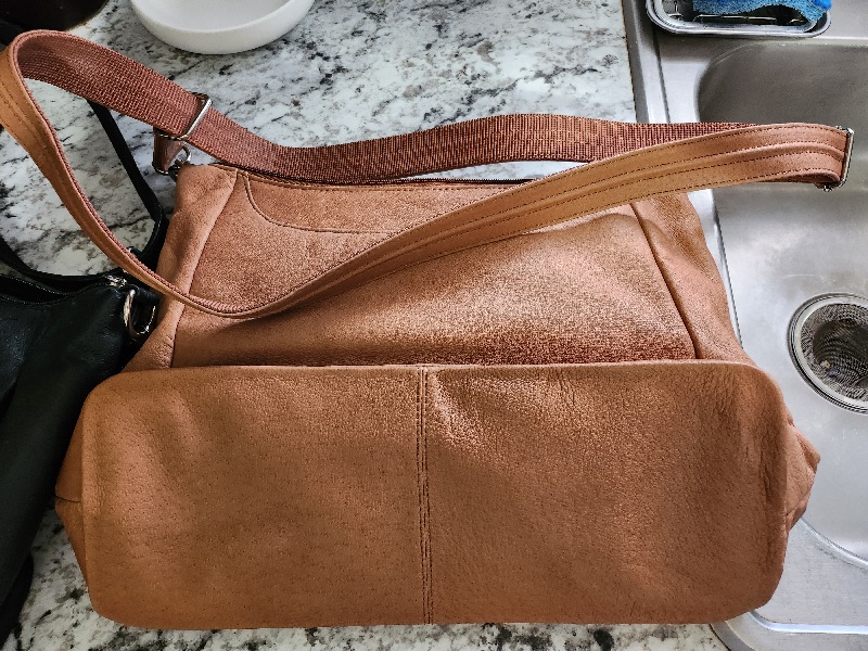 I have two leather concealed carry purses from Gun Tote'n Mamas. One black and one tan. They are pretty big with a lot of pockets/pouches (approximately 14.5" long; 10" tall; 5.25 wide at base). Includes a small holster (J-frame or small semi-auto) for each purse. These purses were only used a handful of times then retired to my wife's 'handbag graveyard'. They are really well made and were north of $100.00 each when new. The black purses looks great, the tan one has a couple small spots from something (see the photo). Asking $50.00 for both and will send by insured USPS for extra $10.00. Can meet within reasonable proximity to Terrell.