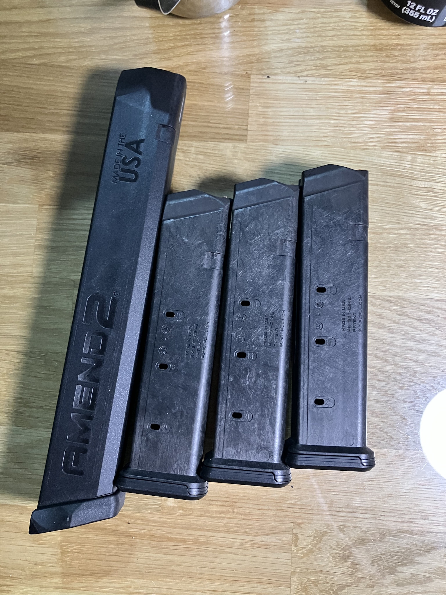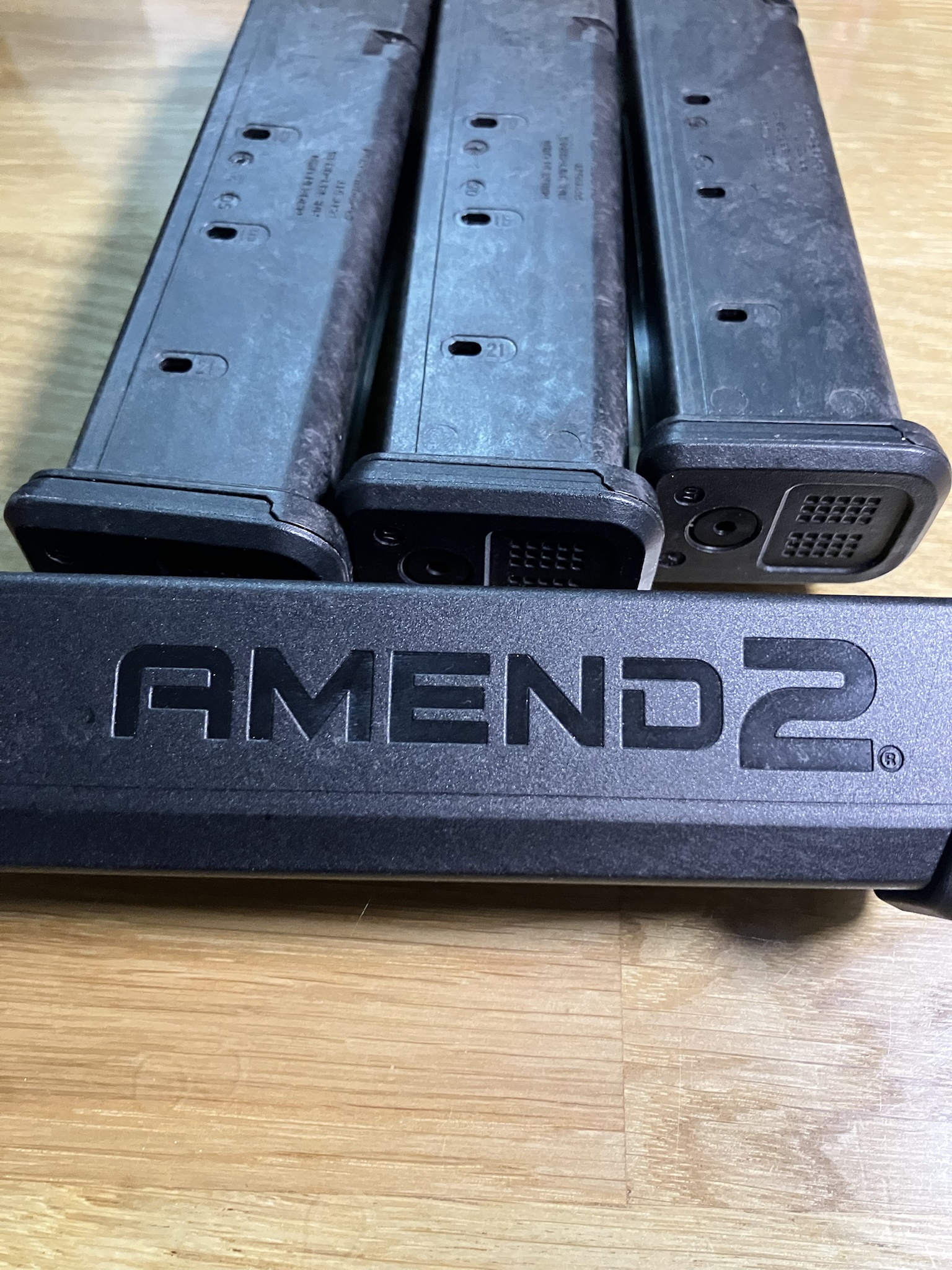 3 Magpul 21 rd Glock mags, 1 34 rd Amend2 mag.