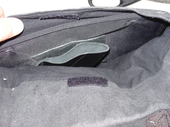 Here we are with the holster in the pocket: That's it. Now you have a CCW messenger bag.