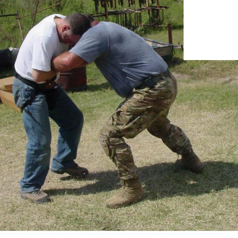 The second half of each day involved learning then applying MUC, combatives, weapons access/retention/disarms from in holster & drawn, standing and grounded positions, etc. These skills and concepts were then practiced in a series of live drills and force-on-force evolutions.