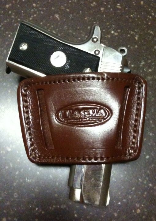 I hope these pics help. The holster is made by Tagua and run about 25.00-35.00. I like it. Its made of a pretty nice grade stiff leather that breaks in and forms to your pistol fairly quickly if you just leave it in there for a few days.
