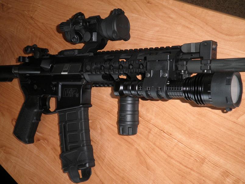 Here is mine. CMMG M4 Upper and Lower, UTG Handguard, ATN Ultra Sight, Magpul AFG. Sorry the pics aren't better, had to use the old "point and shoot".