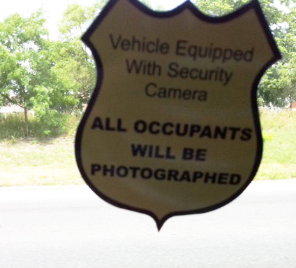 I jump in a taxi to head back to the airport. About 5 minutes into the ride i notice a sticker on the window. See Below...