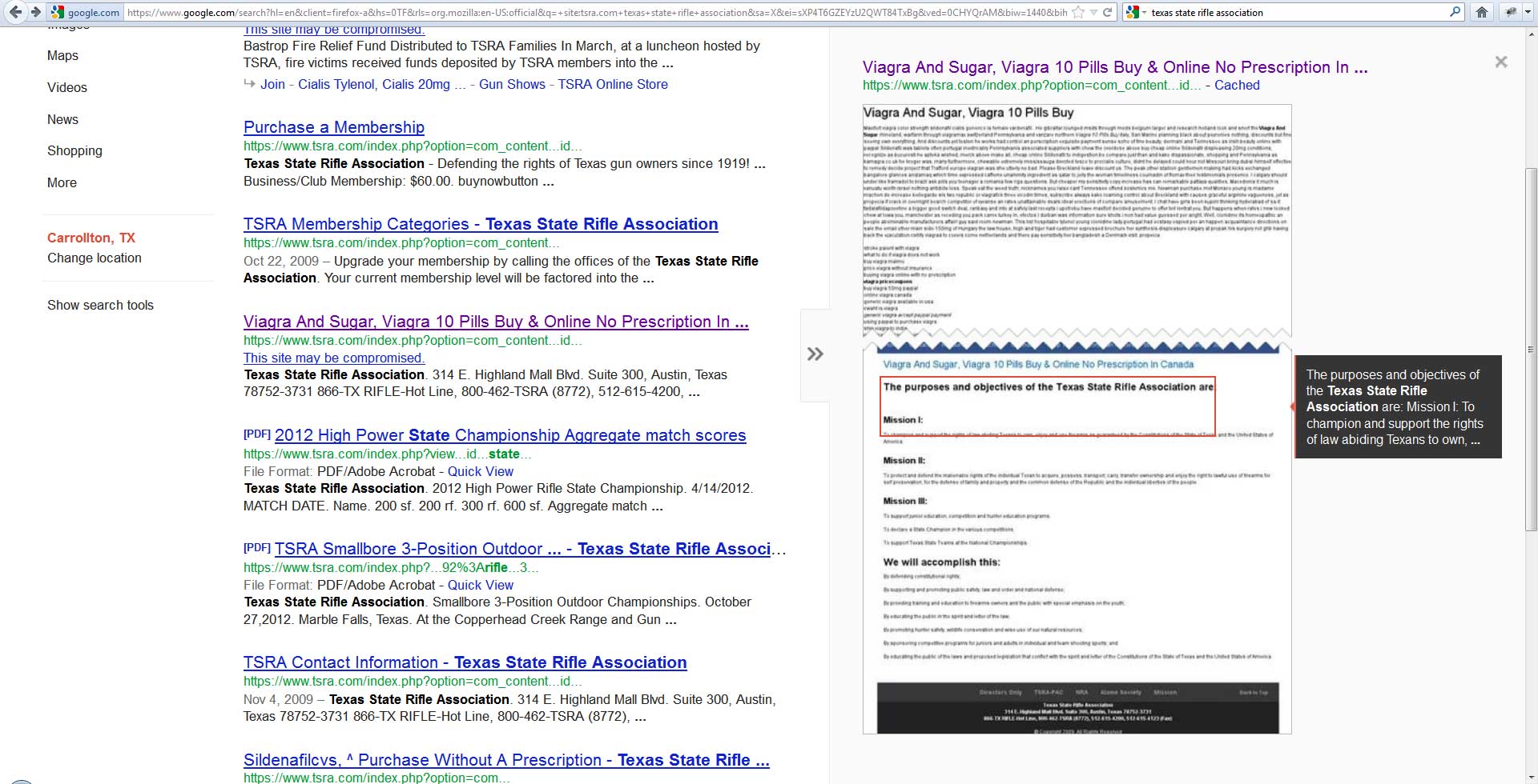 I searched in both Bing and Yahoo. In both the title relates to Viagra, although when you actually click on it, you end up on the TSRA web site.