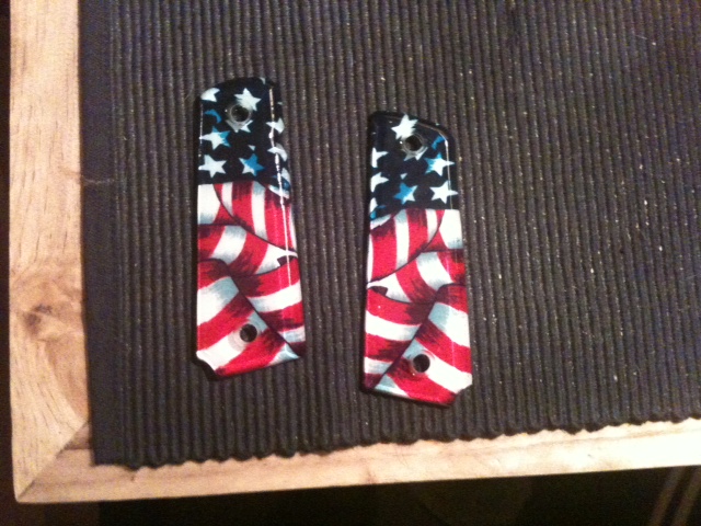 Flag grips for a 1911. This is a duplicate set that was given to me. Never been installed.