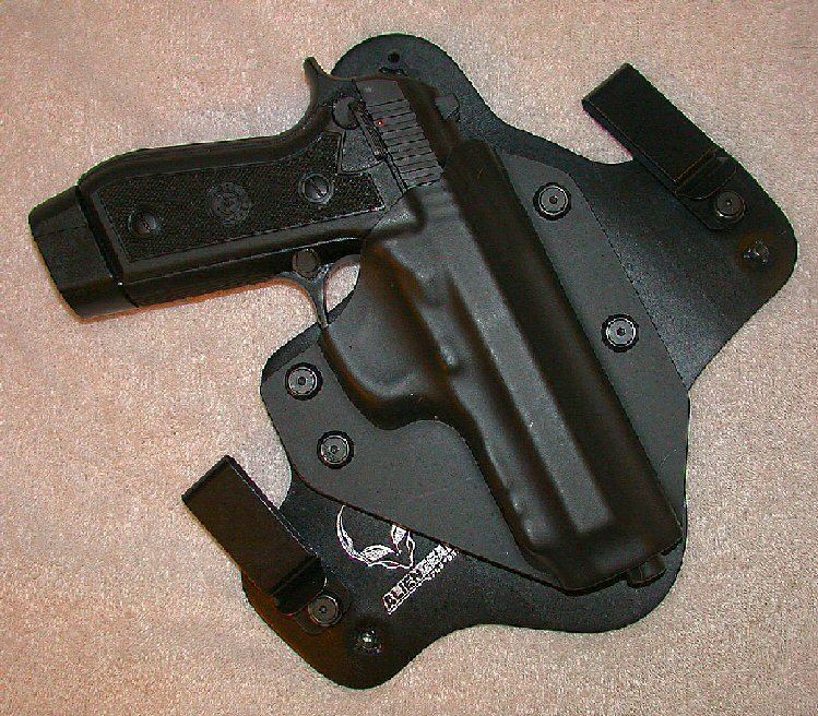 As for the holster - impressed with construction, materials, fit, versatility and design. In comparison to the "big name" hybrid brands, it is twice the holster at half the price with thicker leather and Kydex. For the PT92, I like that it covers the length of frame from rear of trigger guard to muzzle with just a small portion of the barrel exposed and the bottom opening curls slightly over end of slide. Did have to adjust the tension to lessen drawing effort when belt cinched IWB. Considering their warranty, ability to change pistol shells and adjust retention, these guys have done their homework. Totally impressed.