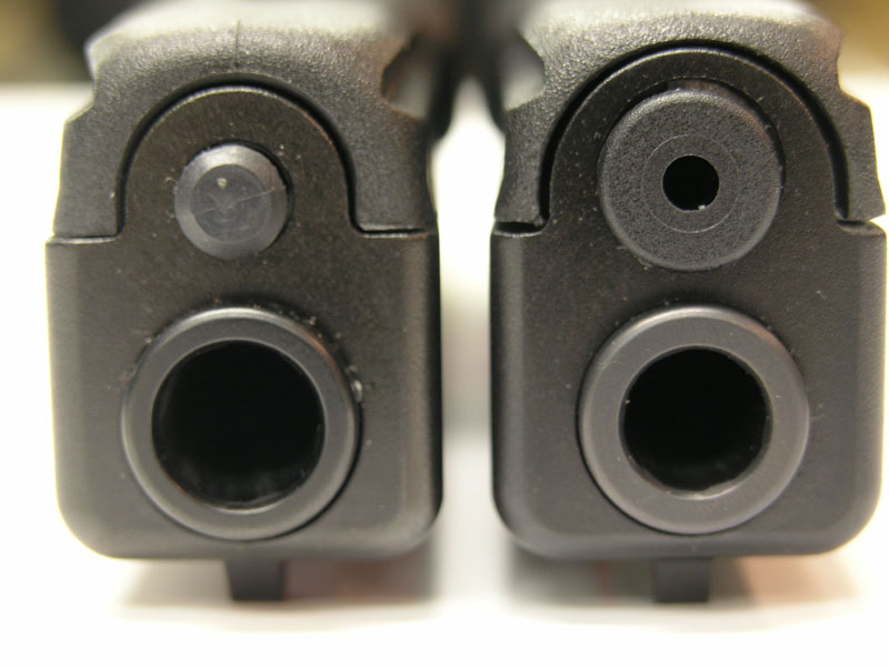 Different calibers, so different size spring holes in the slide.G23WAX wrote:Mine is the same as the one on the right which is a Gen 4. It is my understanding that you cant interchange because (for lack of better terminology) the hole is too small.