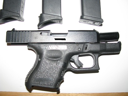 Glock 27 Gen3- This has been my main carry pistol since 09. It has thousands of rounds through it and still runs like a champ. Gun has never jammed! New recoil spring added about 300 rounds ago for the heck of it. It has some mild holster wear near the front sight and a nick on the rear factory Glock plastic sight that is only cosmetic. Still shoots like a laser! Comes with used Cross-Breed Super tuck Deluxe, used Galco Ultra Deep Cover holster and magazine pouch (all horsehide).