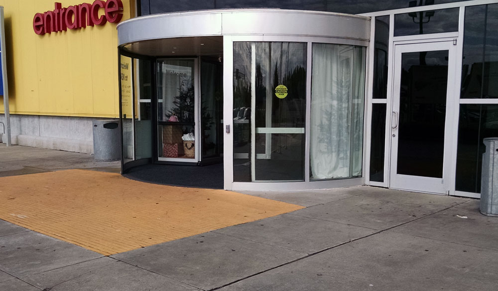 No the side of the WIDE revolving door was a regular hinge door. Sign was on it.