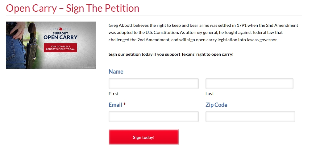 Re: Greg Abbott's Open Carry Petition