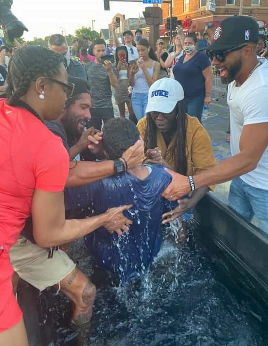 Can you believe this? Now they've put in a tub of water on the spot where George Floyd died so people can be baptized there. It's holy ground!