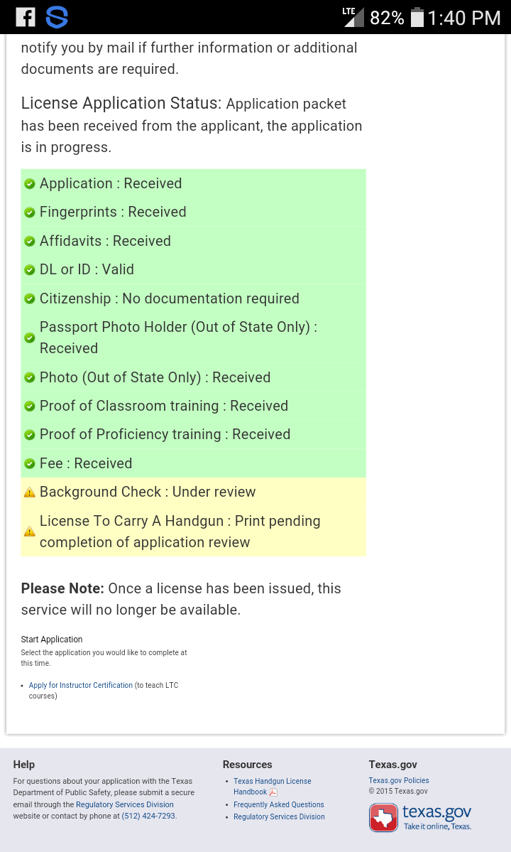 7/30/2016 - Status was "background check under review" and "print pending application completion"