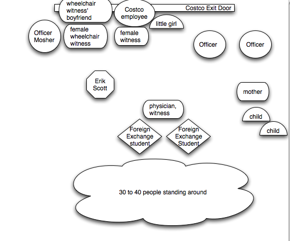 Thanks for the sketch, excellent, you have done so more than the DA, I was hoping for a 3d computer simulation from the DA with each person shown, so that each witness could then confirm on the stand where they were located. We would then understand what they could see and not see based on where they were. Yes, very lucky no one else was hurt or killed.