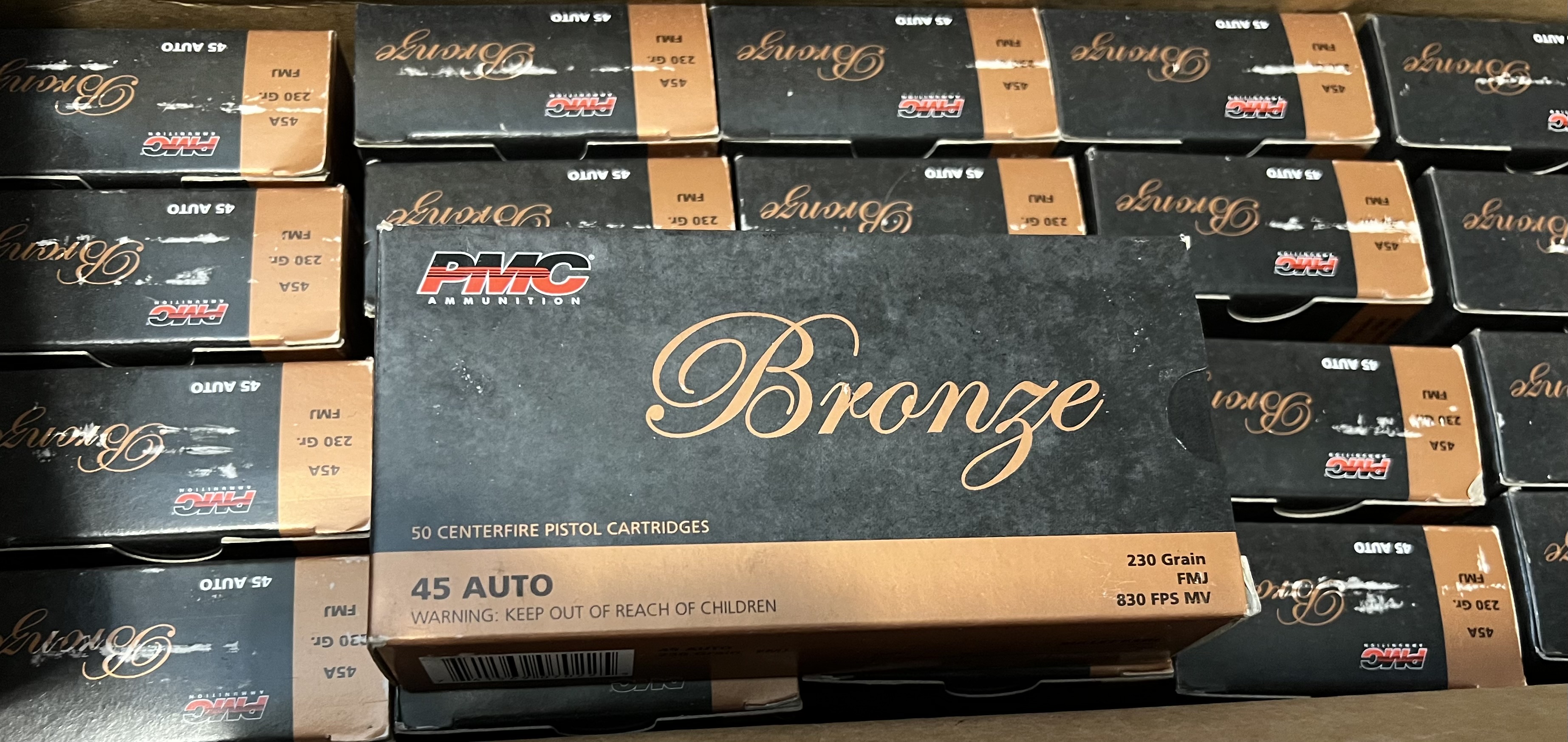 I have a case of PMC .45acp. It is about four months old. I have just cleaned my room and realize I have way too much .45acp. This is 1,000 rounds of target ammo. I paid $423.00 with tax and shipping. You can have it at $350.00 FTF