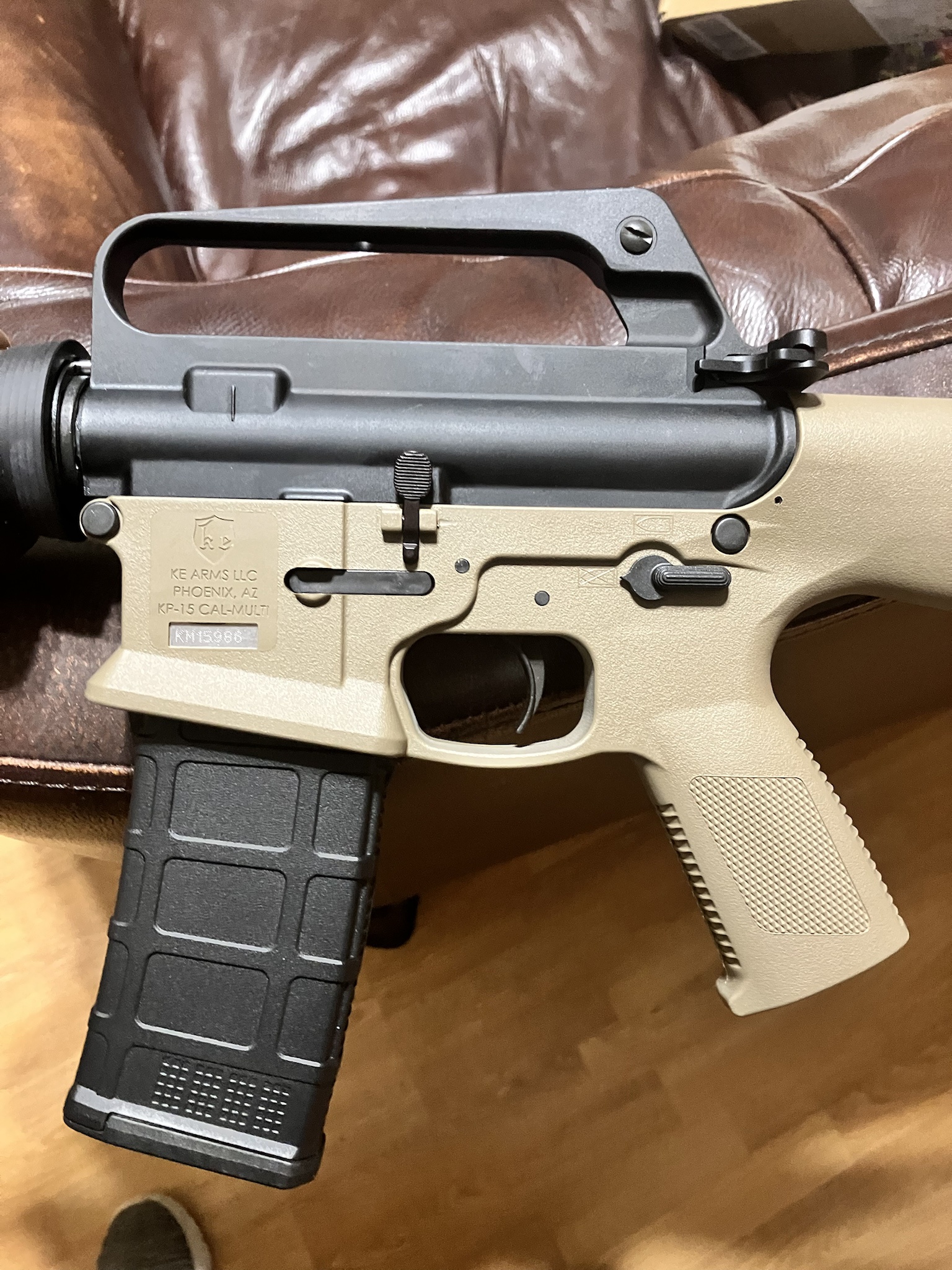 C7 upper, KP15 lower with BC BCG and milspec trigger. No muzzle device installed. Barrel Details Parkerized, Chrome bore, 1/12 twist