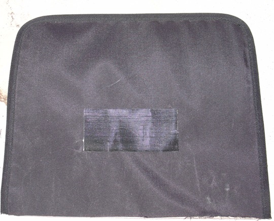 Also, the bag I am using is canvas and kind of floppy so I am sure the holster will print through the bag. To remedy this, I put my panel stiffener between the holster and the outside of the bag. You'll see what I am talking about in a minute.