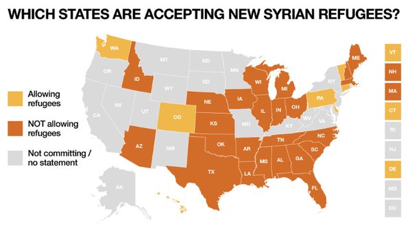 More states say no to Syrian refugees after Paris attacks http://www.cbsnews.com/news/more-states ... s-attacks/