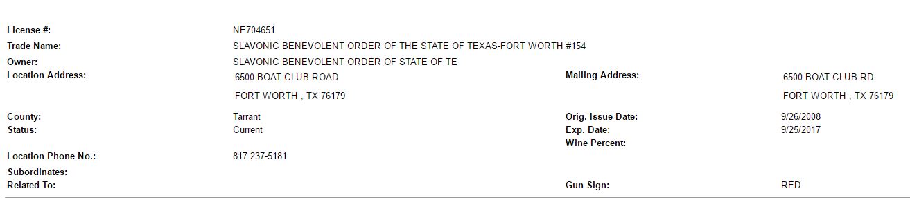 My boys have been going to gymnastics at Sokol Ft Worth for 7 years. They have always had the typical blue TABC sign up as they do rent the place out and serve alcohol during those special occasions. I have been to 1 event (maybe) that they had the bar open years ago. However, they never have it open when the kids are around (even for parents just waiting). They have special events about 5-6 times a year and these are almost always rent-outs for birthday parties/weddings/etc. I was there about a month ago when the TABC person came in and told her that they had to put up the 51% sign on the window. It doesn't make since on a day to day basis. My kids go to gymnastics there and it is a pain to disarm to go in to sign them in and out every class period. Can someone help me understand why this location would be a felony to carry in?