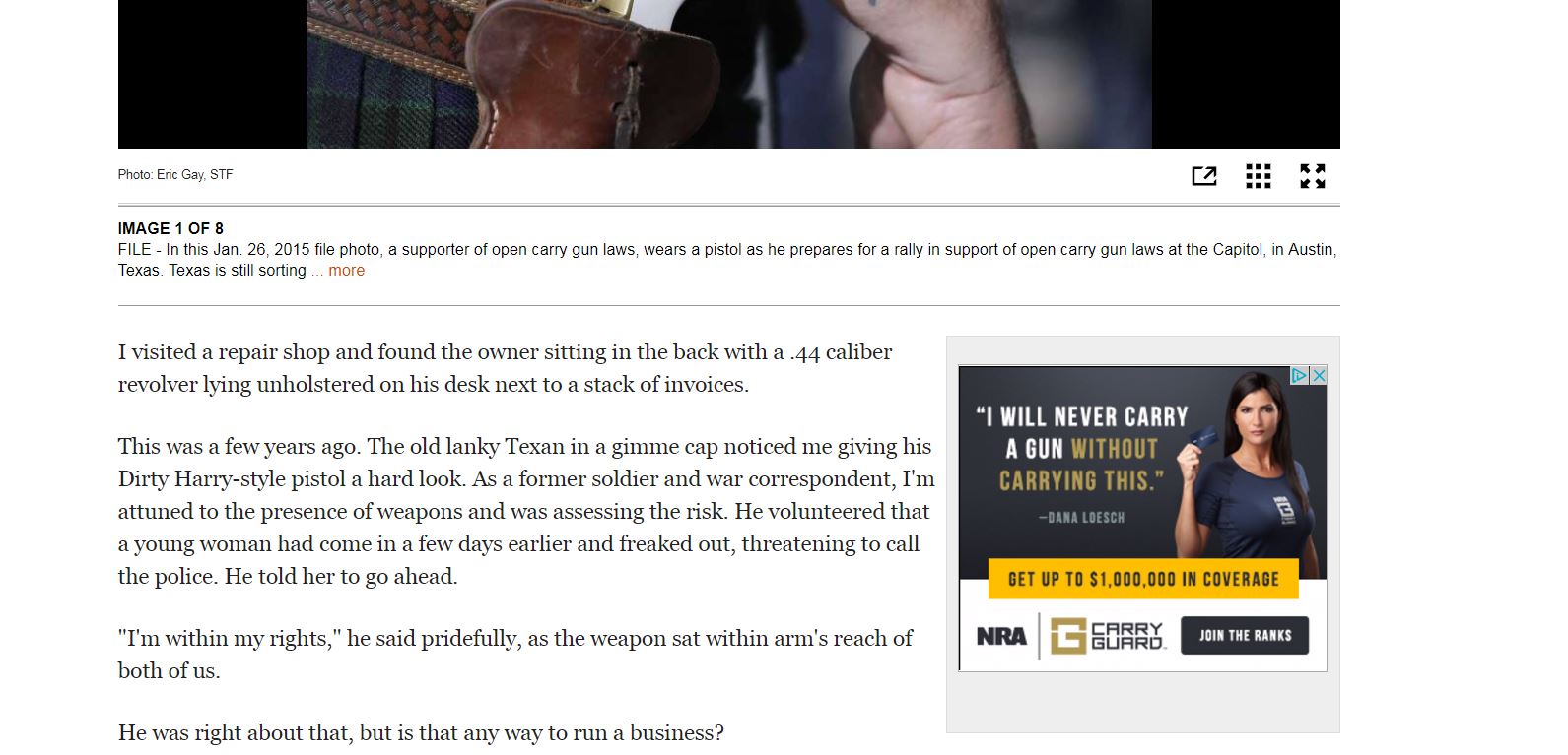 However, what I found most interesting is the following. The article also had an advertisement for NRA Carry Guard!