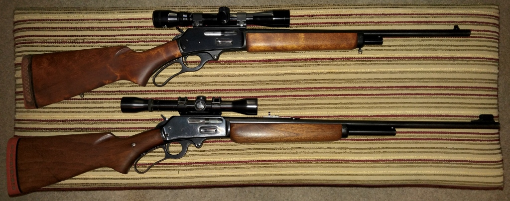that 336 looks like a black eye waiting to happen!mloamiller wrote: Glenfield 30 on top, Marlin 336A on bottom. They both have leather straps, which I removed so you could see them better in the gun cabinet (which my grandpa built).