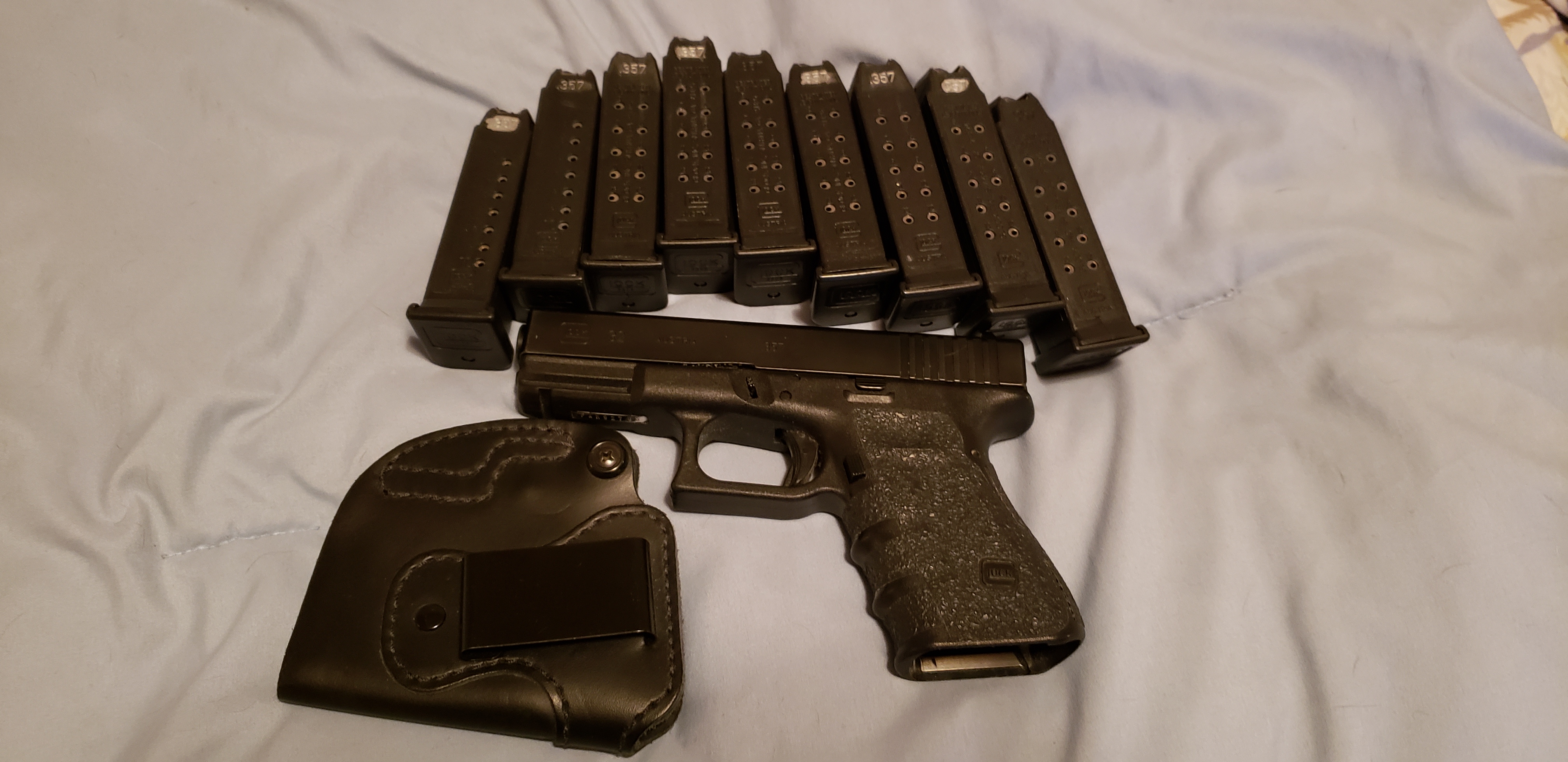 Gen 3 Glock 32 with a factory 23 barrel. Shoots .40 with no issues. 7x 13 round magazines, 2x 10 round magazines. Mags are marked .357 but are 100% compatible with .40 s&w. Will include High Noon leather iwb holster. 357 barrel not included. LTC/CHL only. Located in north Fort Worth near Cabelas. $450.00 obo