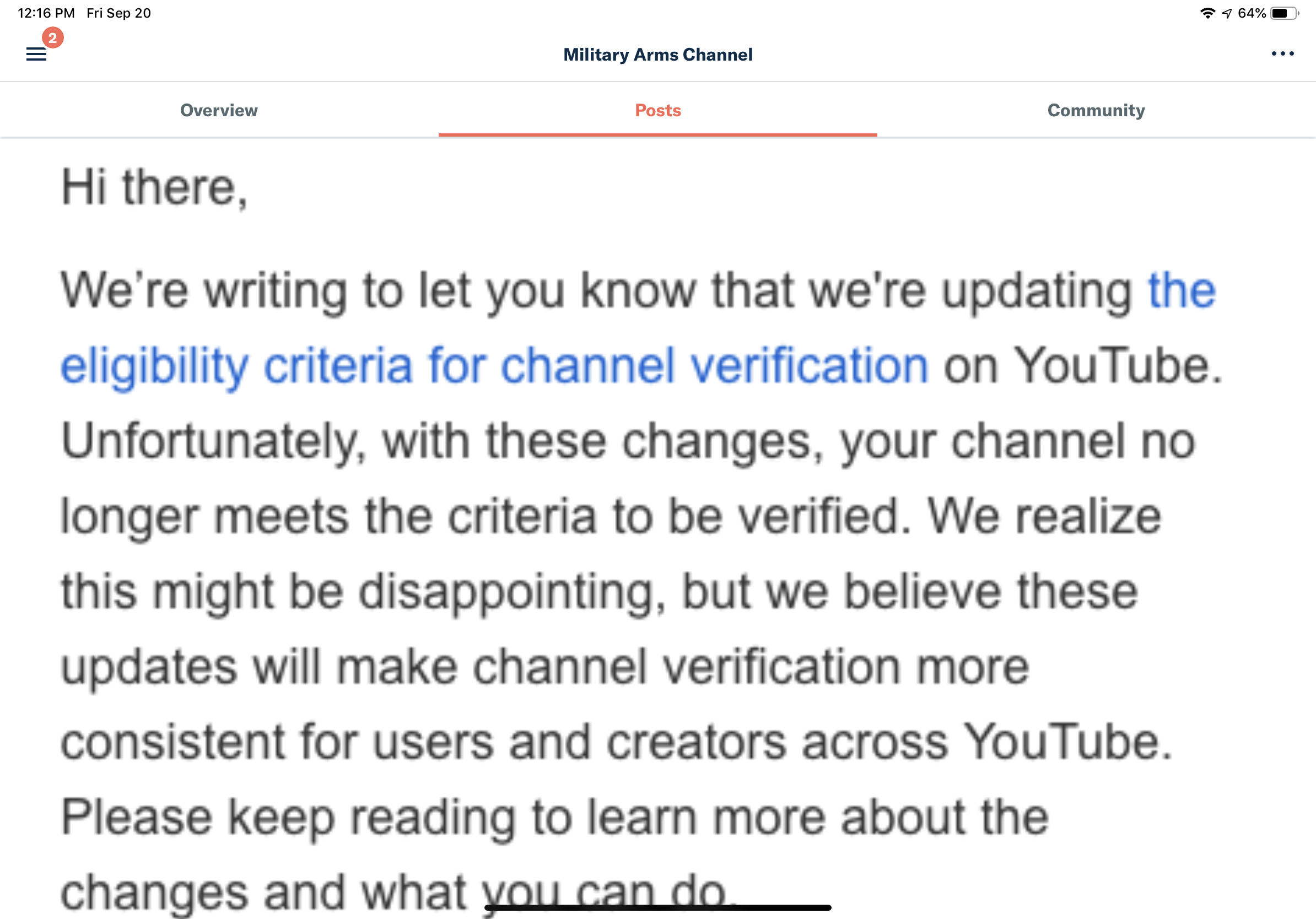 To clarify, my friend's Armed Citizen Armory is not going to be another youtube channel ... it is a website with relevant content for home defense and concealed carry to folks relatively new to firearms and carry.The Annoyed Man wrote: Fri Sep 20, 2019 12:12 pm MAC just posted on Patreon that YouTube just removed his "verified" status. He’s only got 975K subscribers...