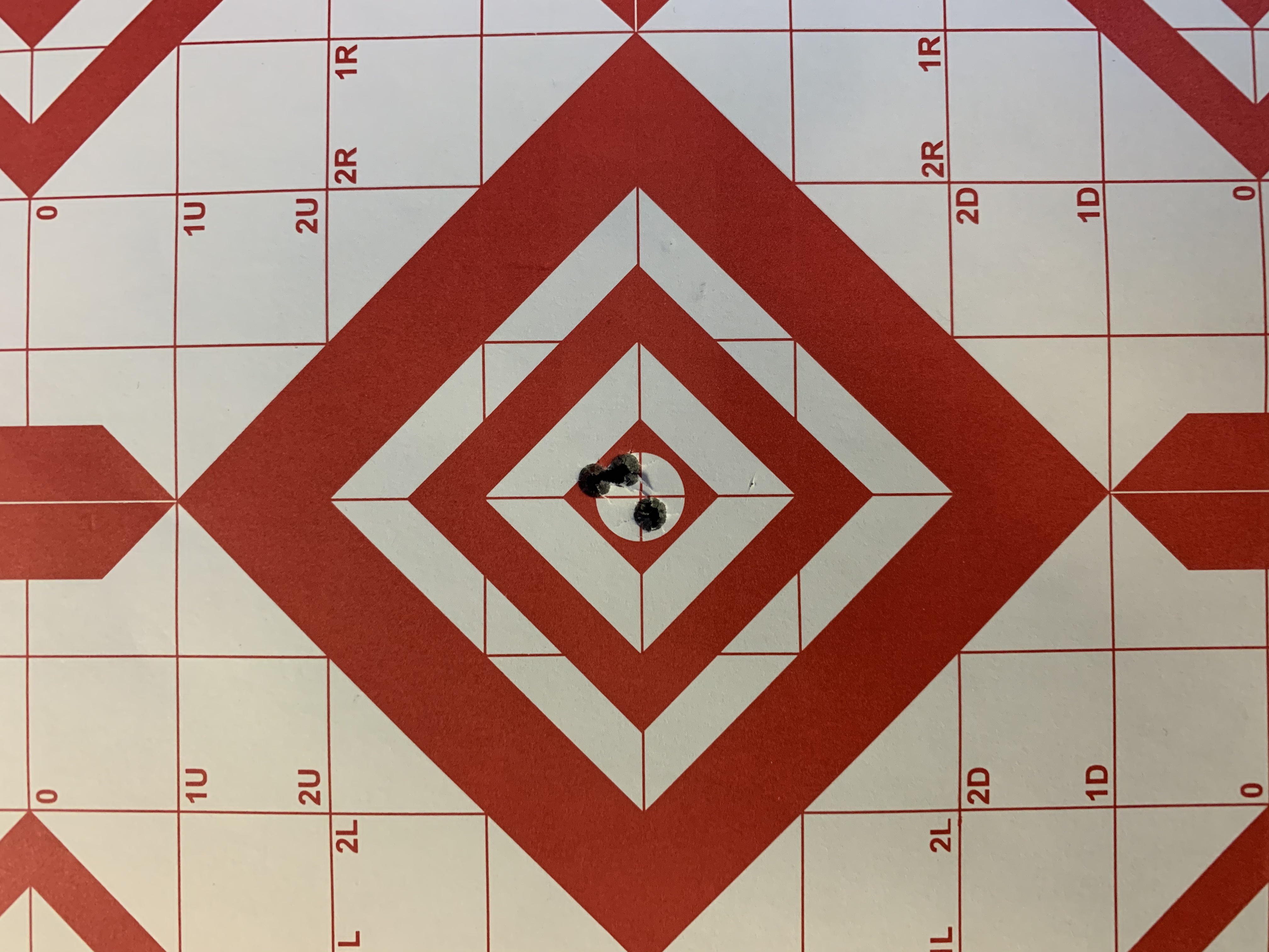 Pics are with a red dot sight at 50 yds, 68gr Hornandy HPBT match ( 3 distinct holes) and the other is 62gr Sierra SBT ( 3 bullets but looks like two holes).