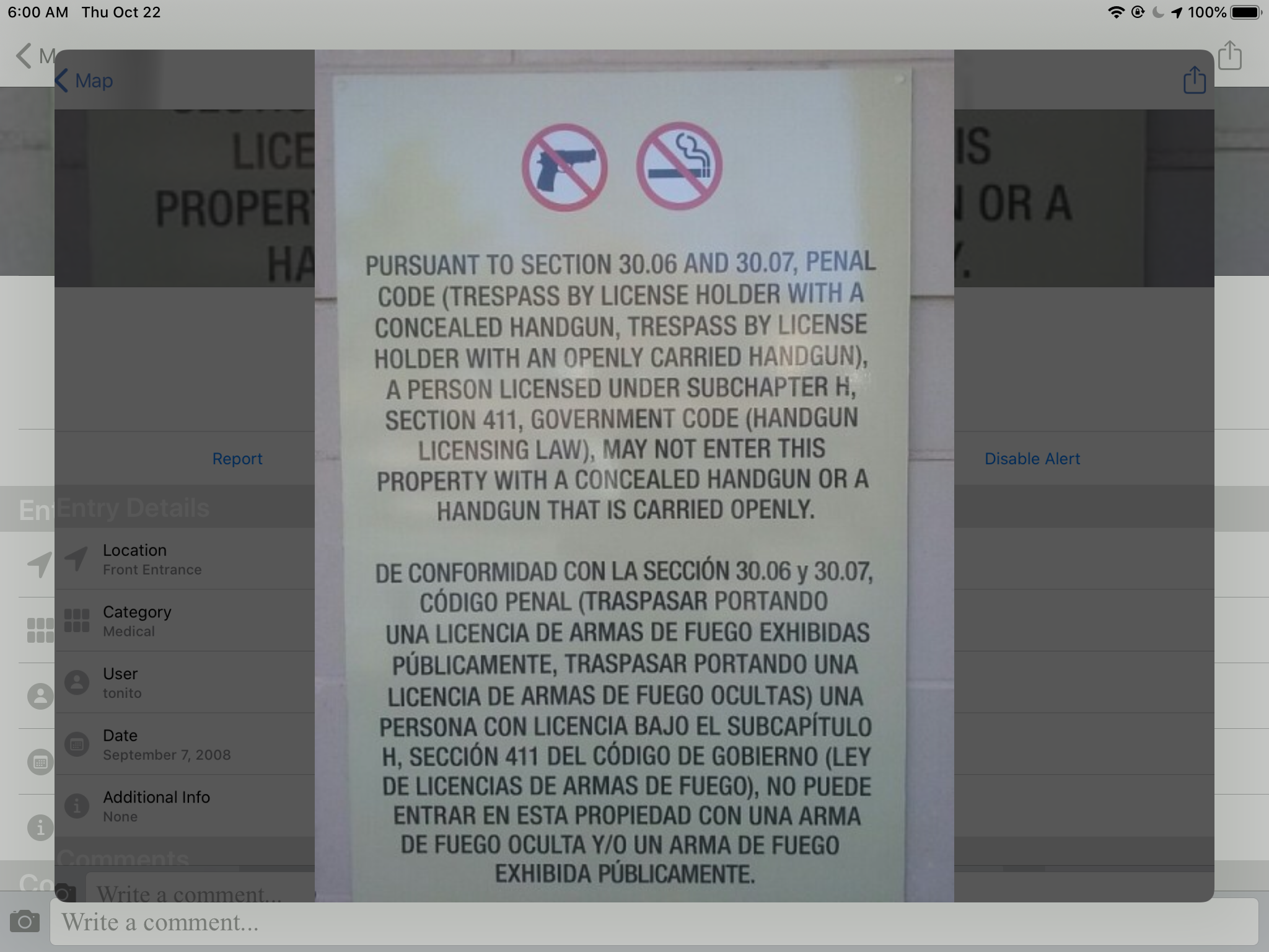 I've posted a report on Texas3006 app of a hospital in Arlington with that same sign.