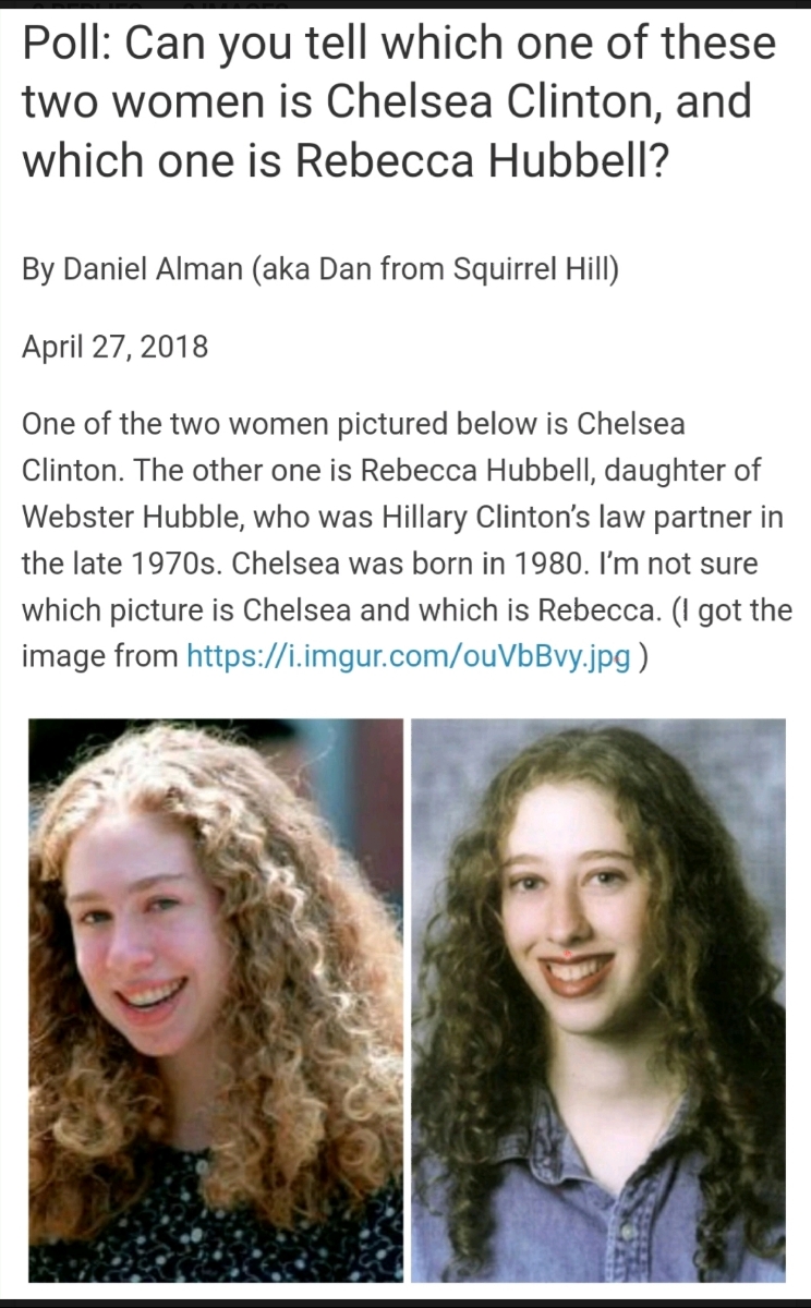 oh that is freaky ...philip964 wrote: Thu Oct 15, 2020 9:05 pm Take the test, pick which one is Chelsea Clinton.