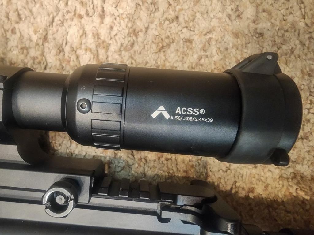 Adjustable gas block, settings for suppressed, standard, over-gassed (dirty). Has a Sig suppressor QD compensator on the front end that works with any QD suppressors (will leave on). Can be swapped for Three-prong if desired. All standard internals and original parts. Has a Primary Arms 30mm scope mount, and a Primary Arms PA1-8x24SFP-ACSS scope on top. Scope included in sale. Its a second focal plane (not first), but at max zoom, the holdover points are within the rifle's MOA and holdover is simple. Front AFG foregrip in FDE, 2 20 round PMags, one 10-round PMag, mag carrier.