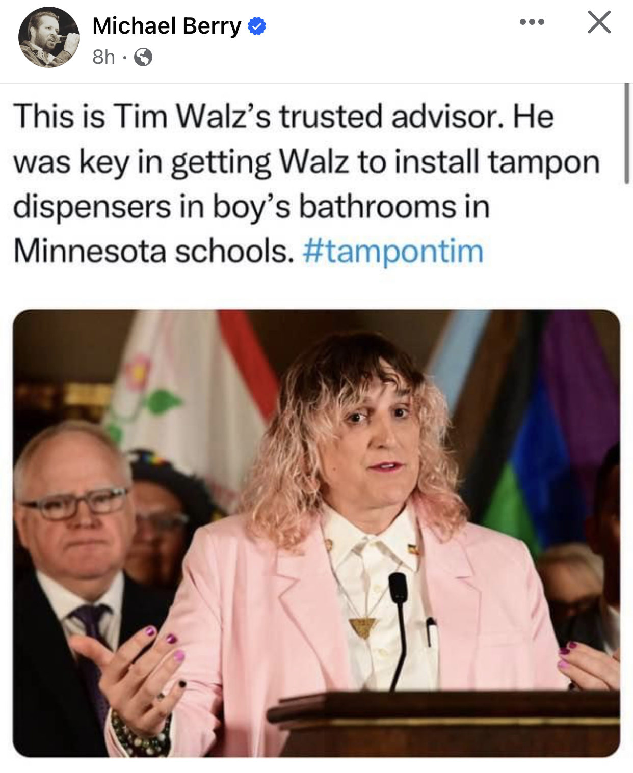 Reading the tea leaves... Walz is somehow worse than Brandon. Young boys and Communist Chinese are very much a central part of his life. I'm imagining that the CCP has some significant blackmail on him.