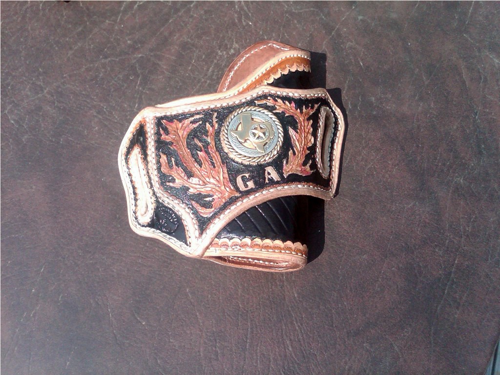 I got stopped a lot yesterday by people admiring my new holster. And I used it all in the classes and the Dag Gum Texas Star. The sweat shield really made it nice to wear and reholstering was a breeze because of it. It worked great and the draw was very nice. I used one of the 45acp mag pouches you sent with my 9mm but worked great. Only thing I have to do is break it all in. New leather... gotta be made to fit the wearer. But yes, got a lot of very nice compliments on it. I showed it to Charles and we had a nice talk about them. Hope you are going well with all you are doing.