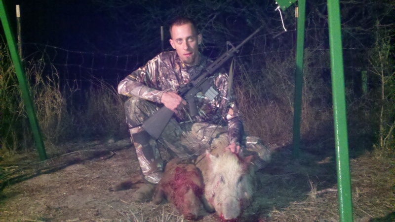 I was very happy with the .308. The hog was a little guy, only about 110lbs, and at 130 yards that 150gr SST dropped him like a bad habit The sun had already set and using an Eotech really made a difference over iron sites with the lack of light. Can't wait til next weekend to try it again.ExMarlboroMan wrote:You sir are a lucky man, I want an AR10 sooo bad! For now my .223 with 55gr hornady soft points will have to do. Yep it's alot of fun, especially hunting at night, riding around, walking through brush, all seems a lot more exhilarating in the dark.Carry-a-Kimber wrote:I got a Bushmaster ORC .308 for Christmas from the wife and broke it in by taking a hog with it a few days ago during a deer hunt. I agree with you, hog hunting is a lot more fun than deer hunting.