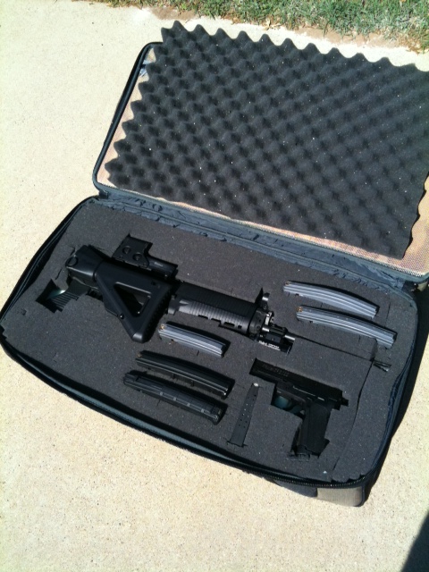 had this idea a few weeks ago..needed something to travel discreetly with...fits well in the suv... a little heavy to lug around..but it is on wheels...the top is necessary bug out stuff..firt aid kit, emergency radio, mre's.. etc...bottom has Sig 556 Patrol version and Sig Pro 2022 9mm...just my idea...hope you guys enjoy....