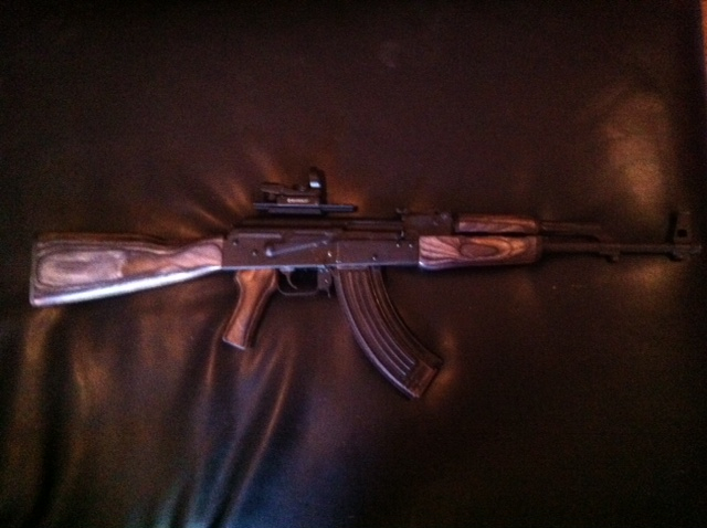 heres my project and finally could finish this firearm after a few years of other expenses, sporter75, 7.62x39 with black laminate wood furniture, with a Guntec aluminum side mount, and a decent red dot for its price, barska red dot.