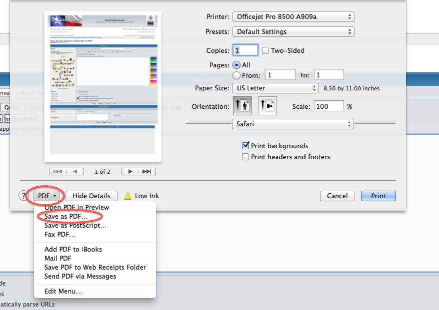 Re: How do you convert a Word file to PDF?