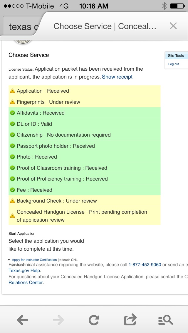 You should see an update any day now...berettaslim wrote:Well JR Texas, my CHL was received on Mar 20. Maybe tomorrow mine will update, cause it sure hasn't this morning