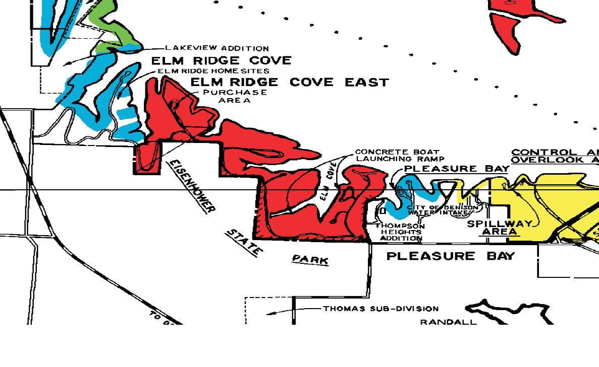 In the case of Eisenhower State park, the land belongs to CoE, but the Texas State Park Service manages the park itself. I have attached a zoomed in section of the map from the CoE shoreline map available here http://www.swt.usace.army.mil/Portals/4 ... p_maps.pdf" onclick="window.open(this.href);return false; showing the area that is a CoE recreation area