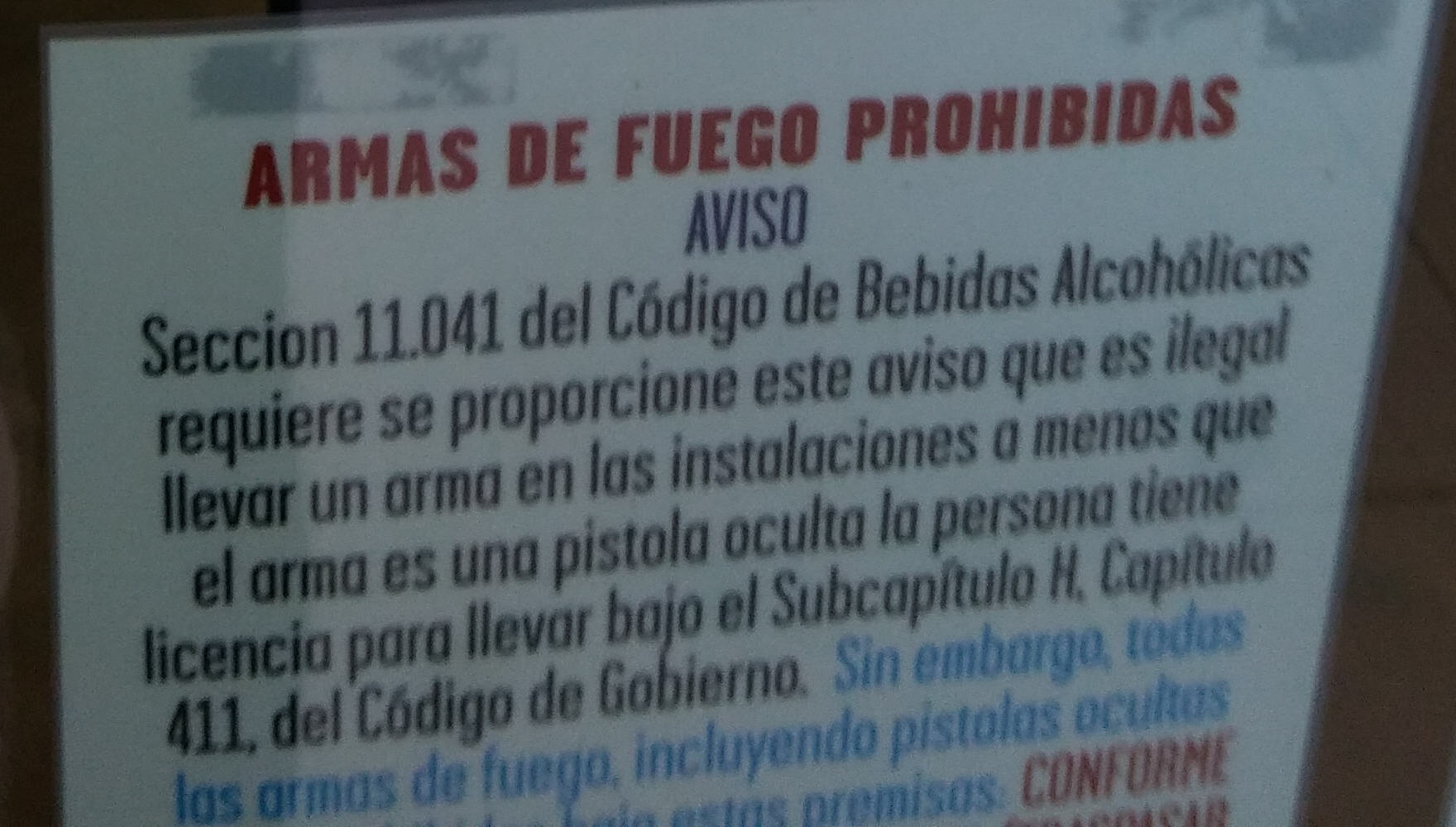 Do they have another sign posted elsewhere in Spanish? That sigh doesn't meet the blue alcohol sign or 30.06.