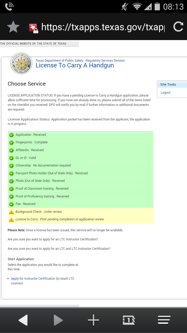 Well the DPS finally did something good and made it so that we residents and tax payers could see the process of our LTC's.