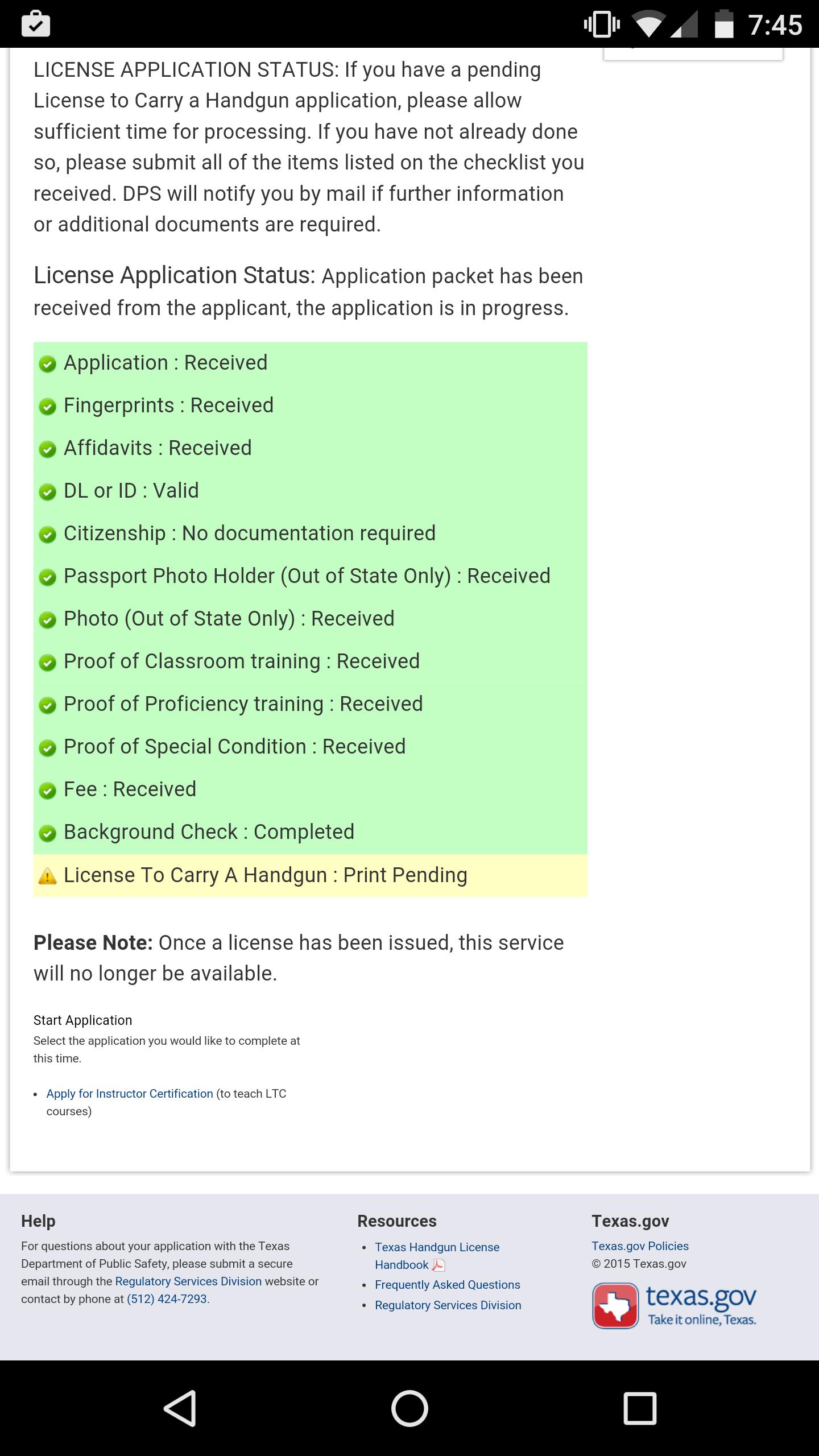 So I decided since Texas is taking its sweet time I'm applying for my Arizona carry permit which will allow me to carry in Texas because they honor our state. I know it's not idea to do because you want a permit from your own state, but come on Texas we are paying you for a service......