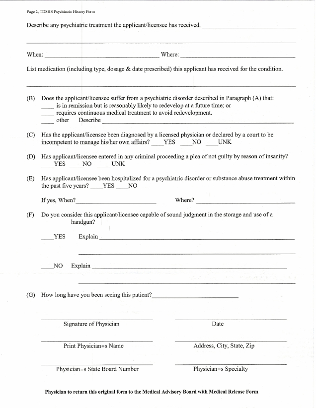 Well that is a good start IMO. At least you have an idea of specifically what the DPS needs from a doctor. I think that will make getting one to jump on board with this easier. They can look over the forms and make a determination if that's something they want to get involved with or not. Best of luck to ya :cheers2: